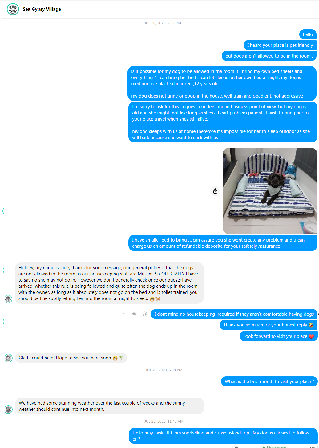 *the reason I post this because many pet lover/dog owner stop them going seasypsy is because they cant bring dog in.here's the screenshot of some comments